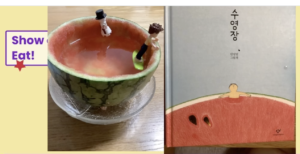 3.  Head into the Kitchen and create something with food that reminds you of summer.  Could you create Scaredy Squirrel’s beach?  Carl and Madeline’s canoe? A swimming pool full of Lego people?  Here is an example, created a few weeks ago by Ain, a student in 1NF.  She made a swimming pool using a watermelon!! Many thanks to her family for sharing her work: