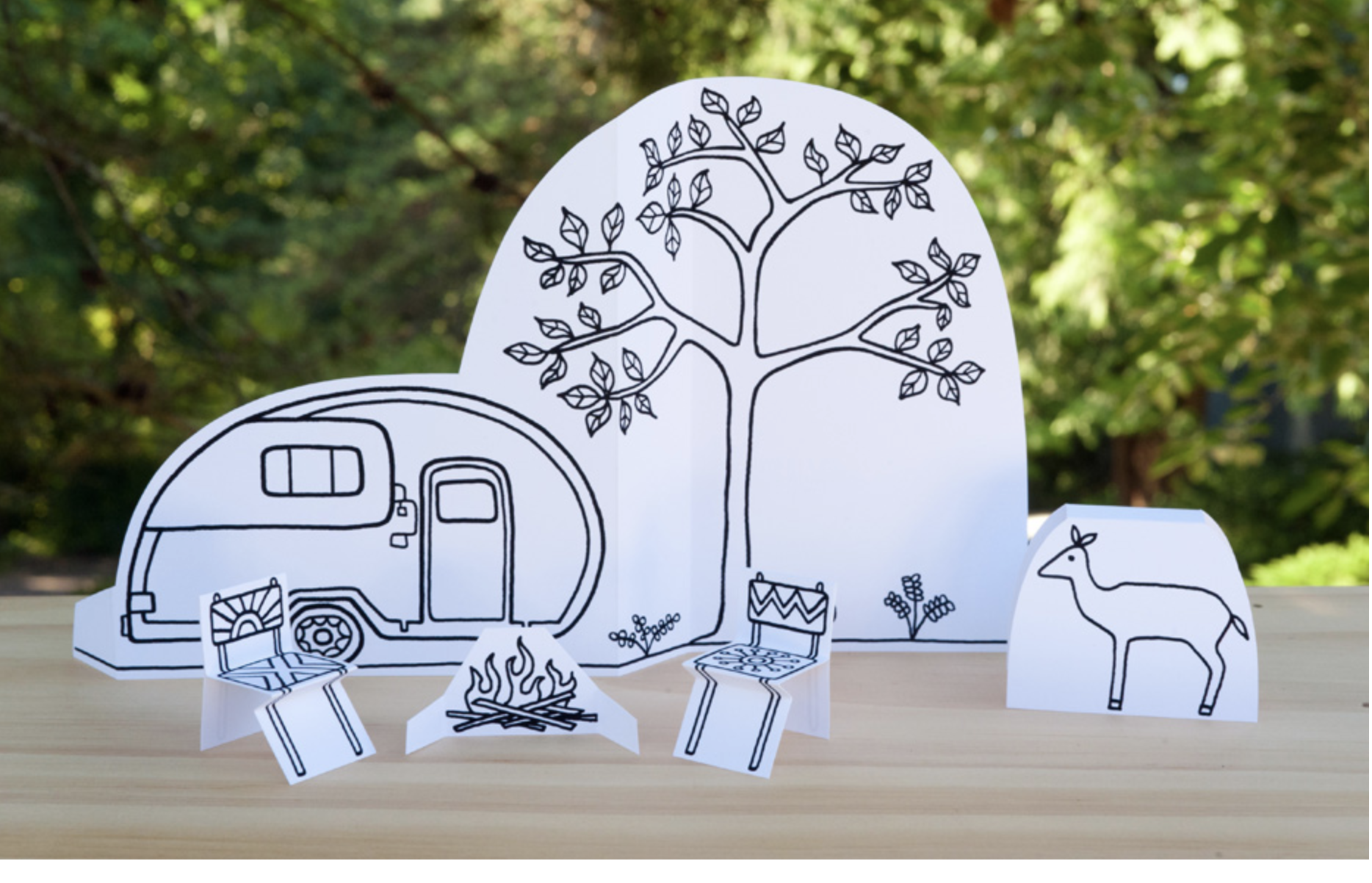 4. Get crafty with Made by Joel.  Download, print, and color the camping scene, then imagine all kinds of camping adventures.  Here’s the link:  Made by Joel Camping Scene