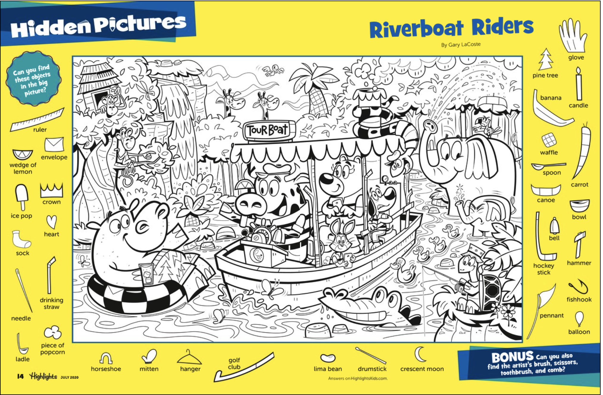 5.  Play Games:  Using our digital magazine subscriptions, go to the July, 2020 issue of Highlights Magazine.  On page 14-15, play Hidden Pictures.  Go on a Riverboat Ride and find all of the hidden objects!