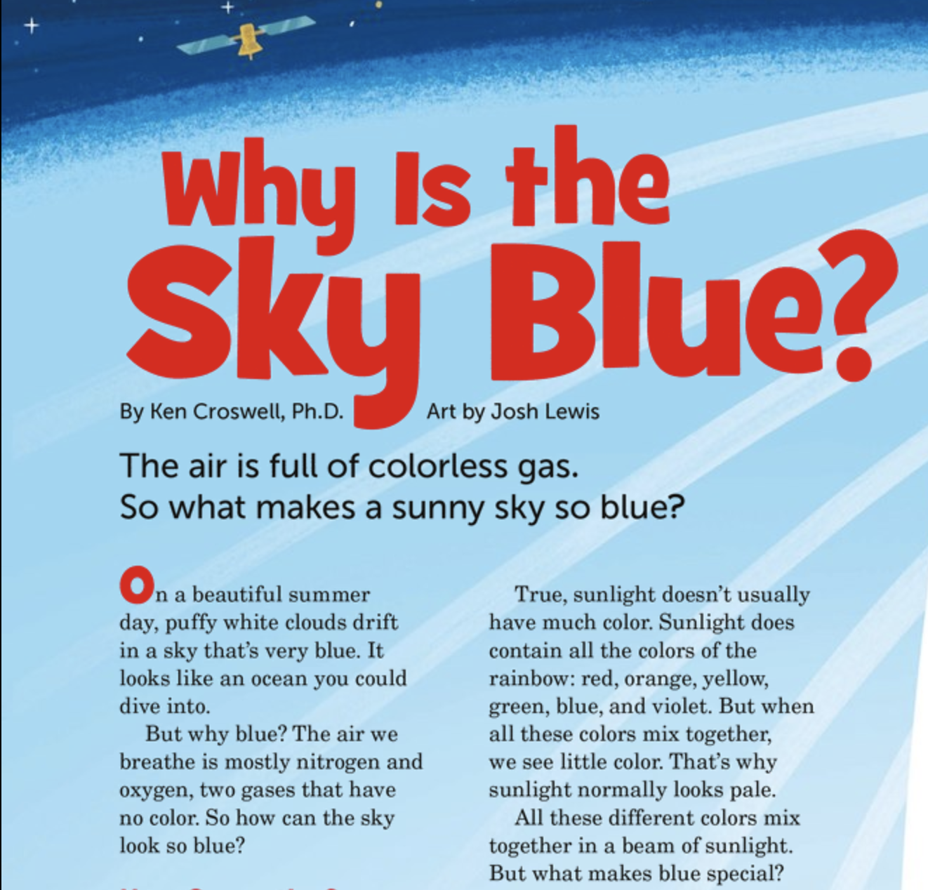 6.  Learn:  Staying in the July, 2020 issue of Highlights Magazine, advance to page 16-17 and find out why the sky is blue!  Blue skies make our summers beautiful – discover the science behind our summer skies.